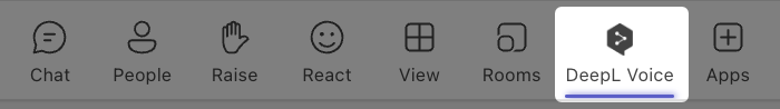- Att klicka på DeepL Voice-app i mötesverktygsfältet